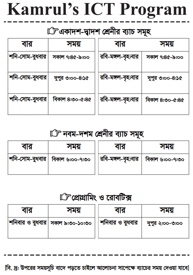 ভর্তি হতে যোগাযোগ : কামরুল স্যার (01722-590995) , অফিস (01759565834)